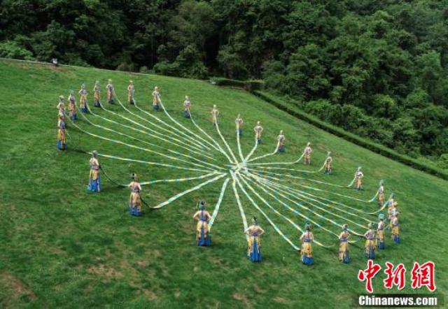 5月3日,湖南張家界武陵源黃龍洞風(fēng)景區(qū)的青年員工身著盛裝,上演了一場精彩的苗族頭帕秀,喜慶五四青年節(jié)的到來。